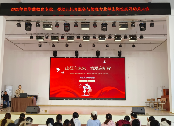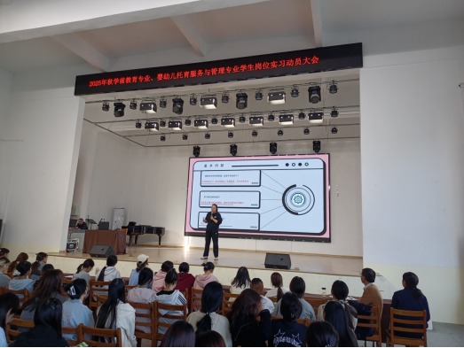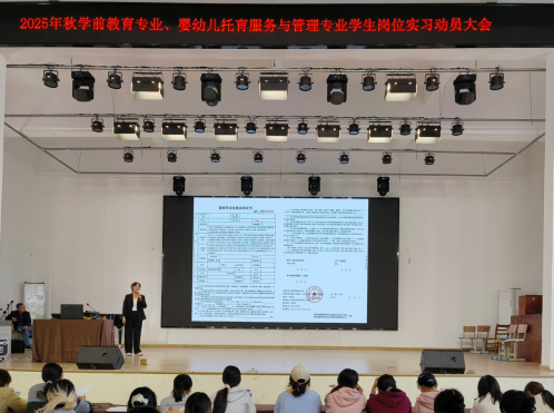 为引导员工明确实习目标、强化安全意识、夯实职业素养,2025年11月5日,yL23411永利官网登录在师范校区员工活动中心隆重举行2025年秋季学前教育专业、婴幼儿托育服务与管理专业员工岗位实习动员培训大会。学院领导、教学办、学工办负责人、实习指导教师及2023级学前教育专业、2024级学前教育(五年一贯制)专业、2023级婴幼儿托育服务与管理专业全体员工共同参会。